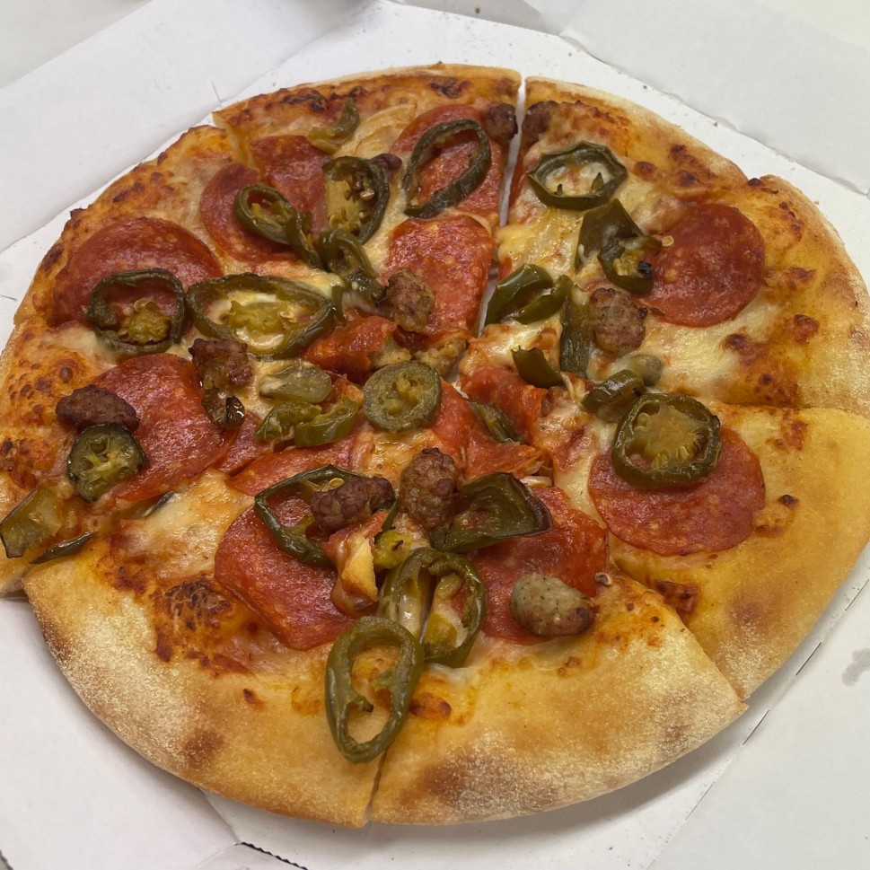 ハラペニオが結構辛いです!これはデフォルトでハラペーニョがついているメニューですが、普段はクワトロ・ハッピー(4種類くらい入っているやつ)にハラペニオを課金して追加してたりします🥰金曜日夜や土日はピザ食べたくなりますよねー!🍺