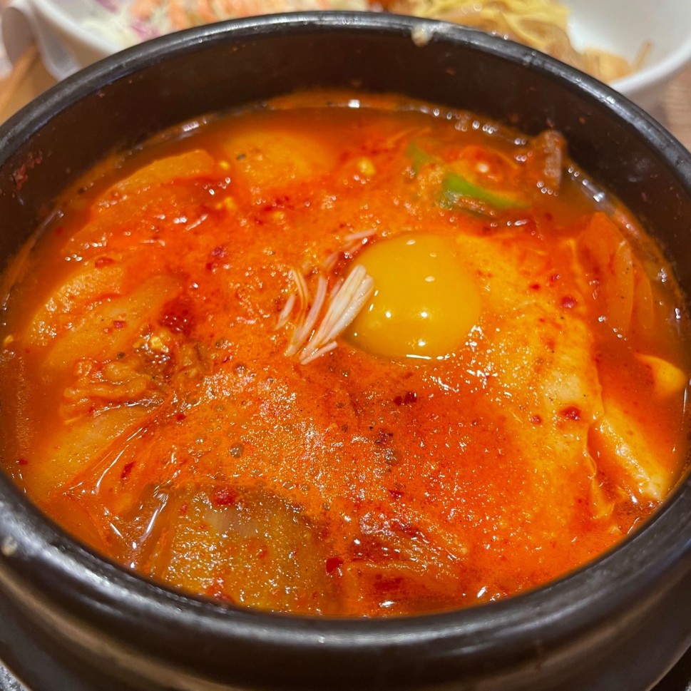 ちゃんと辛い!海鮮のいつものスンドゥブではなくてプルコギにしたので、お肉は噛むと甘味を感じます。うまい。平日のランチ時間だったので飲み物全品20%オフしててほんと一瞬ビールに手が出そうになりました。セットで辛いラーメンも頼みました😀