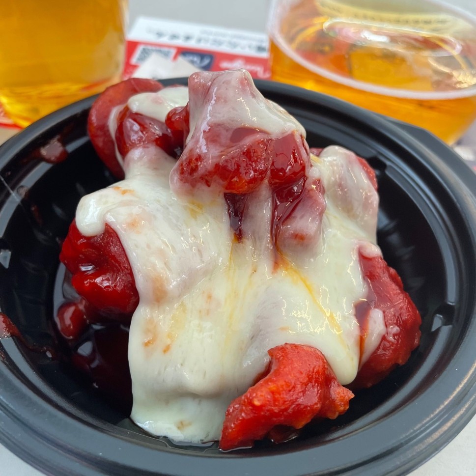 辛い、辛すぎました。カプサイシンソースが苦手だったことを忘れ、ひと口で言ったところ撃沈。チーズが唯一の救いと思いきやあまり関係なく、、急いで会場のヨーグルトジュースを買って悶えました。。残り全部食べてもらったので本当感謝です…