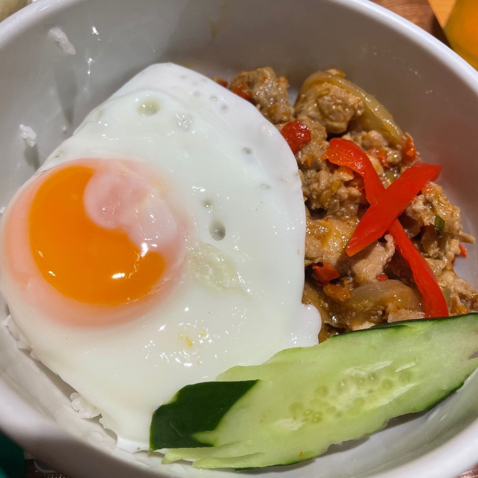 辛めに注文できました!(初)トムヤムもできました!笑ひき肉と一緒に唐辛子が多めに混ざってきます。しかも大切りで食べ応え抜群!すごく美味しいーーっ!是非辛めでも注文してください☺️