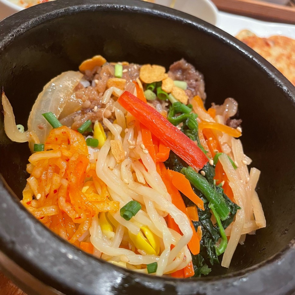 満足度高め美味しい!いつもお世話になっている韓美膳のビビンバ。ランチセットで冷麺と一緒に頼むことができます(炭水化物✖️炭水化物の夢コラボ)。コチュジャンが別で付いてくるので、いくらでもお好きの辛さにできます!🔥