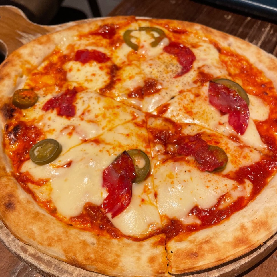 4種類くらいピザメニューありましたが、これがあれば迷いはありません!ハラペーニョの苦味と、タバスコの酸味、チーズの甘さにトマトソースときたらビールは最高ですね!!✨クラフトビールは本当にたくさんの種類があったので、料理に合わせて変えてもいいかも。ちなみに店員さんにタバスコをくださいと言うと「激辛がお好きですか?」と訊かれて、チリの粉末状の辛い調味料と、沖縄の島唐辛子を使った辛い調味料もタバスコと一緒に出してくれました!