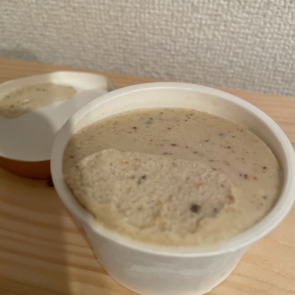 見た目はバニラアイスに七味を混ぜた感じ。