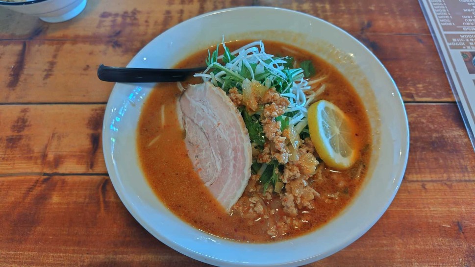 辛さはほとんど感じなかったけど、卓上にある柚子七味と胡麻ラー油で少し辛さは足せます。