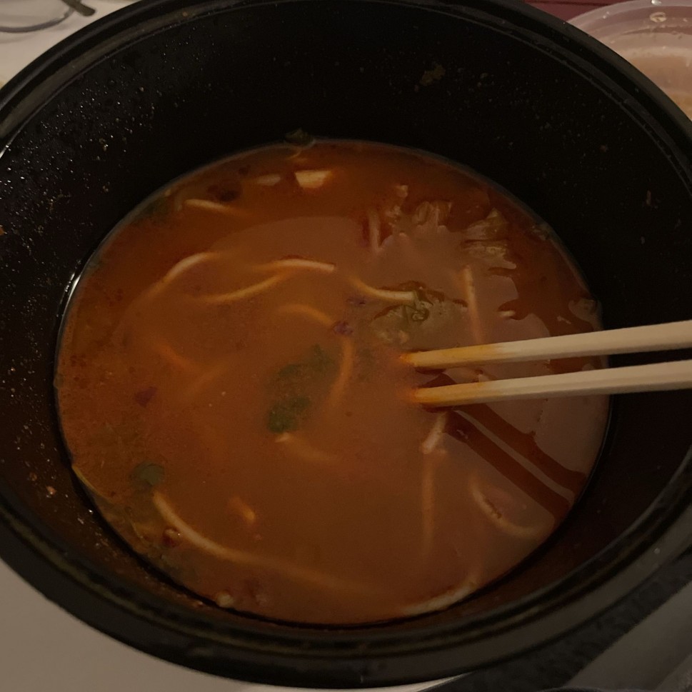麺がもちもちで少し太めなのでスープに絡まって辛くて美味しかったです