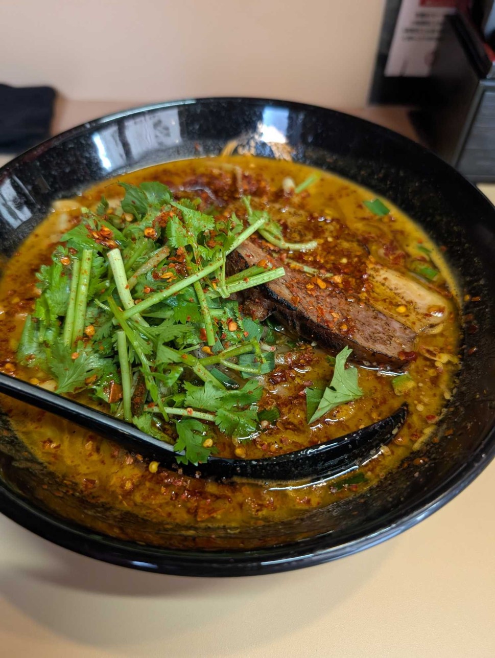 辛さのレベルが選べます、レベル4(最大)で北極より少し辛いかなというくらいでした。クリーミーな味噌ベースで中太モチモチ麺で美味しかったです。もっと辛いバージョンもほしい。