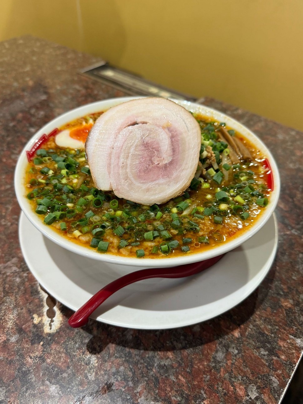 初訪問で。初めては様子見で1辛か2辛で辛さが足りなければ卓上の一味とジャンを入れてという事で2辛で。汗は出るものの辛さはカップ麺の中本より弱いかな?