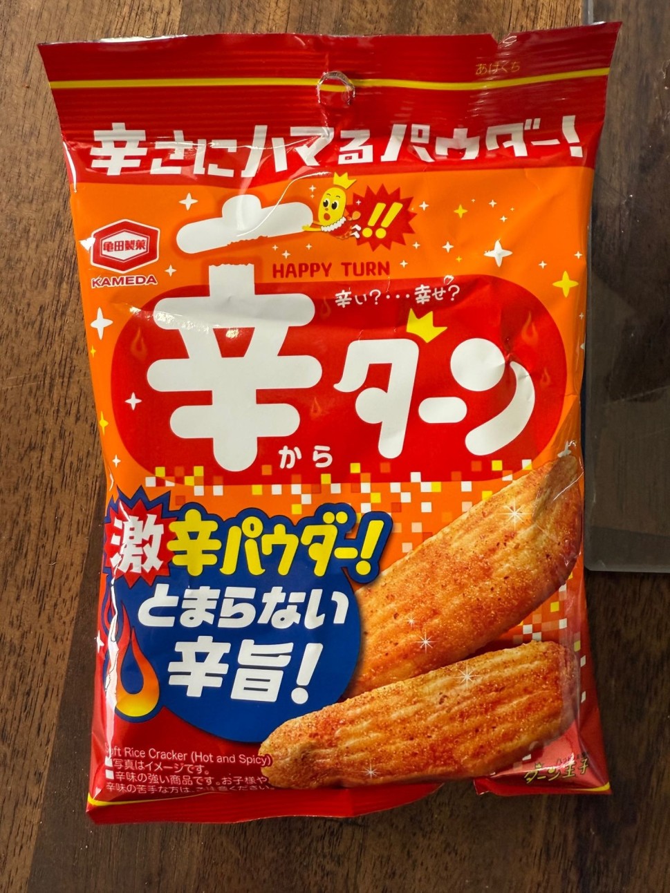 普通のハッピーターンは嫌いだけれど、この辛ターンはお菓子にちょうどいい辛さ(美味しい)です。