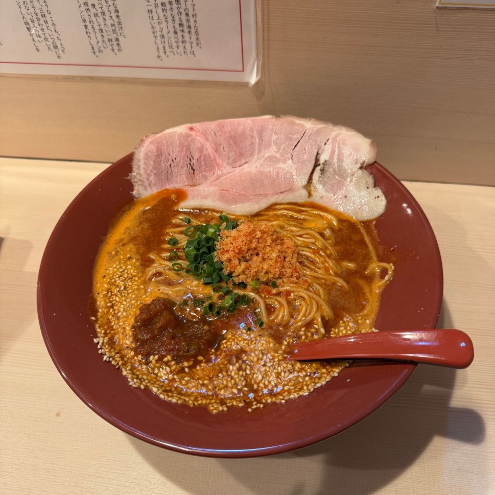 初めは海老とトマトがいるが1口で最後。デスソース系で唇と喉にくる辛さ 細麺でかなり量があります😓デスソース系は苦手なことが発覚(笑) 一応完食