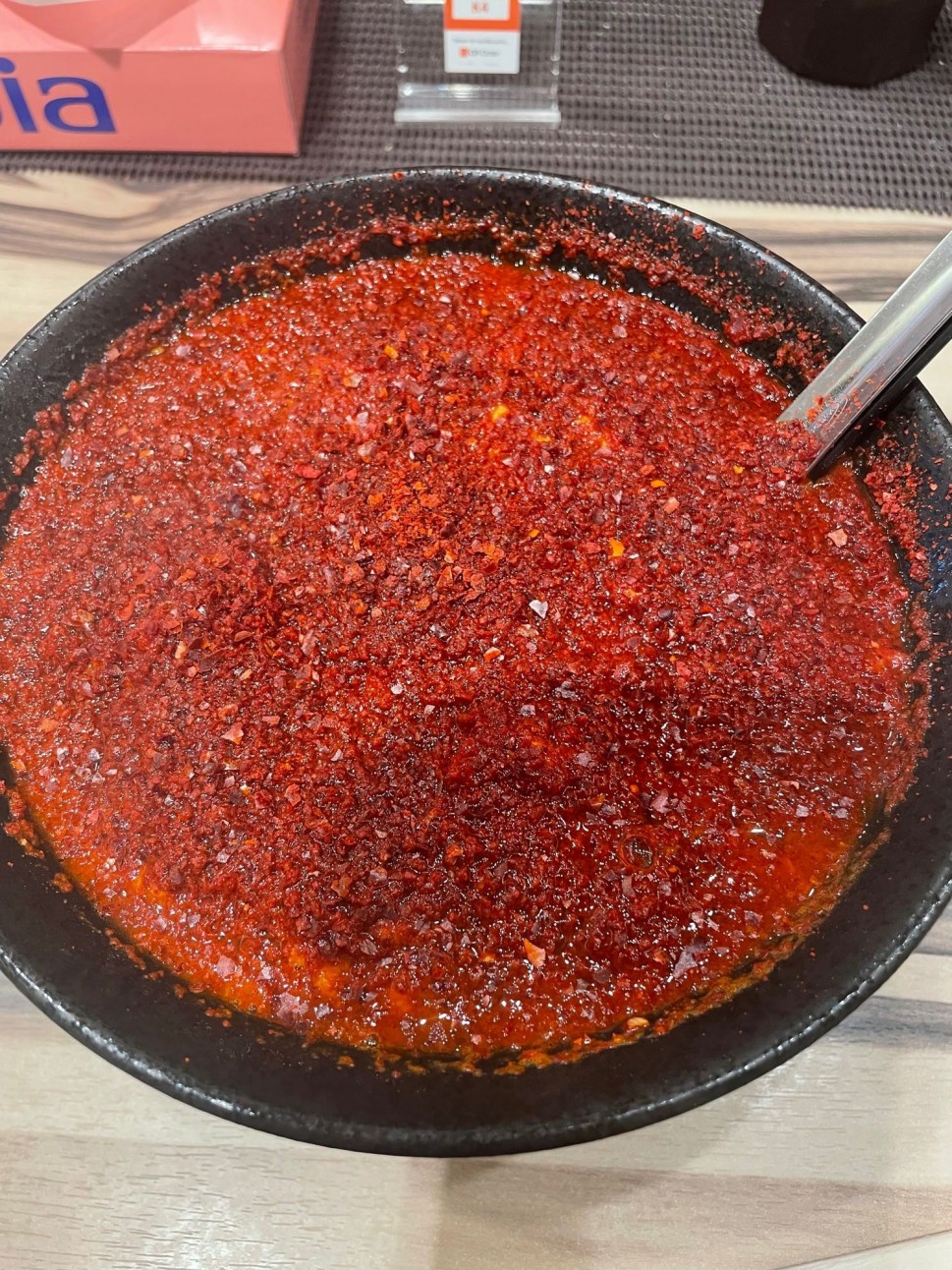 唐辛子あるあるの、歯にめっちゃ挟まるので、マスク必須です。