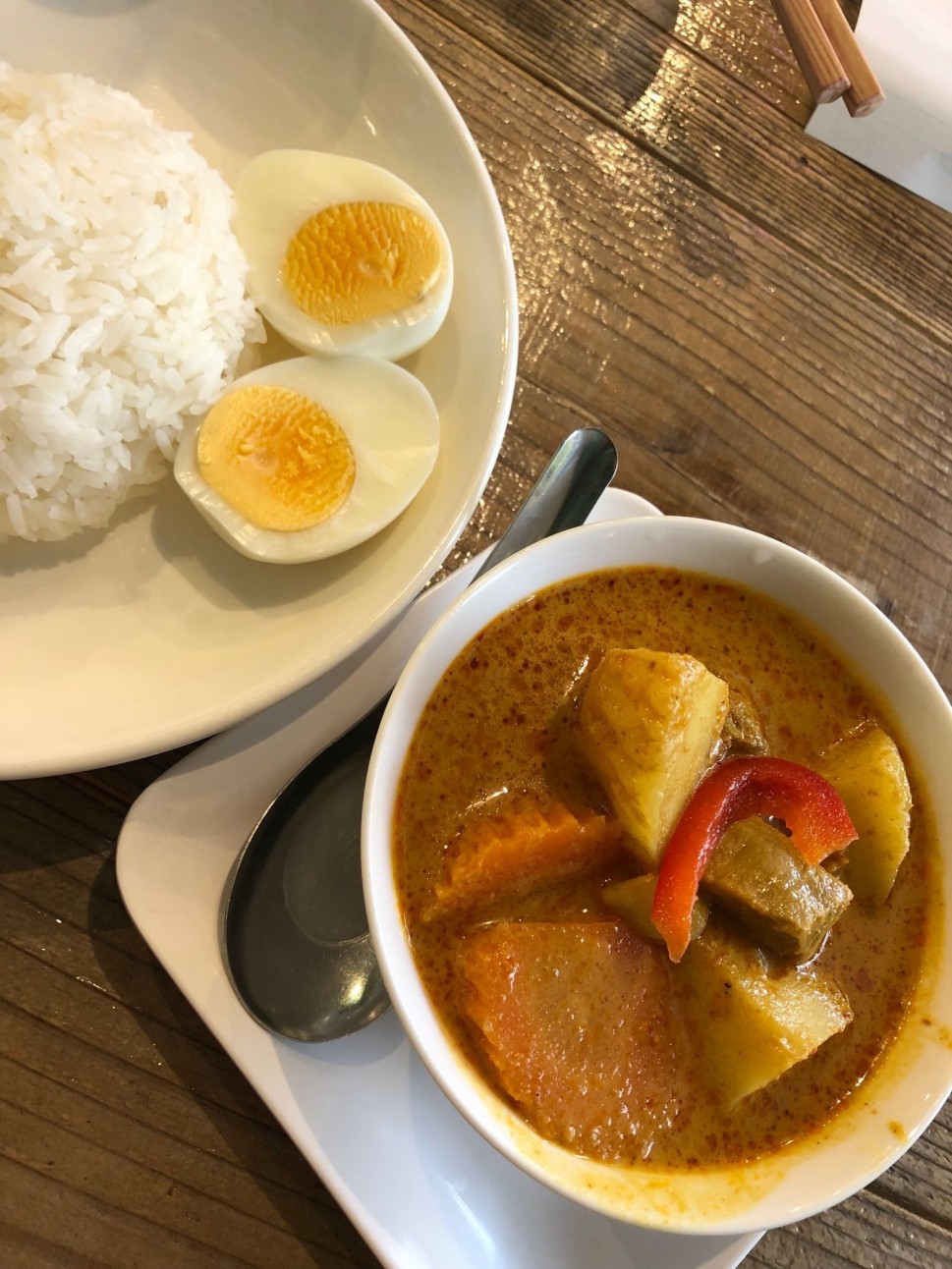 チェンマイカレーは辛さを求めて食べるものではないけど、ココナッツの香りがよく効いて美味しいカレー。