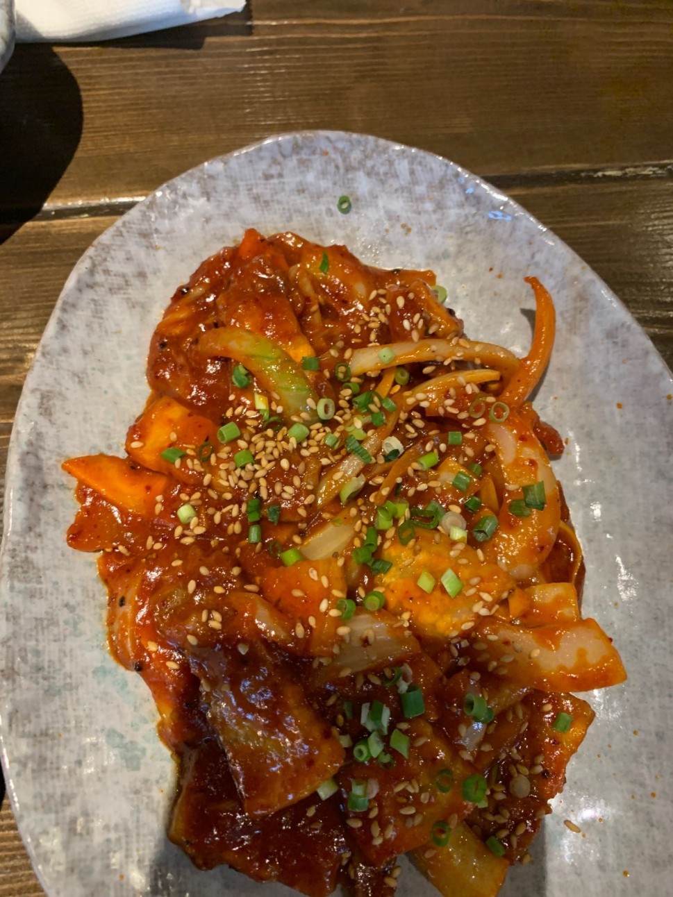 これ単体だと甘みが強い印象ですが、一緒に頼んだ別の料理が刺すような辛さだったので箸休め的にちょうど良かったです。☺️