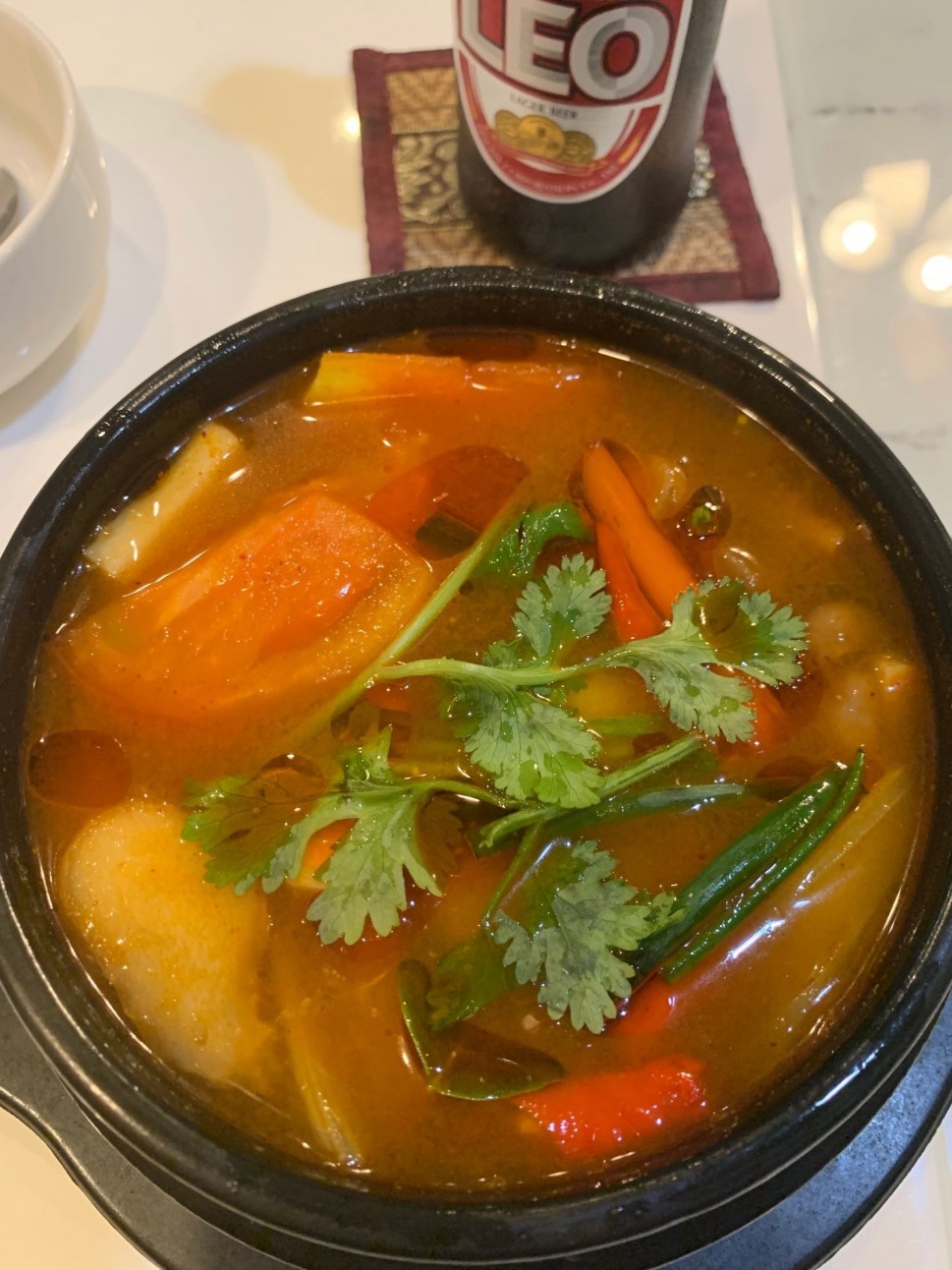 生姜、レモングラス、唐辛子、謎根菜など食べられないけど香りがえげつない野菜が多い!!かなり本格的なお味です。