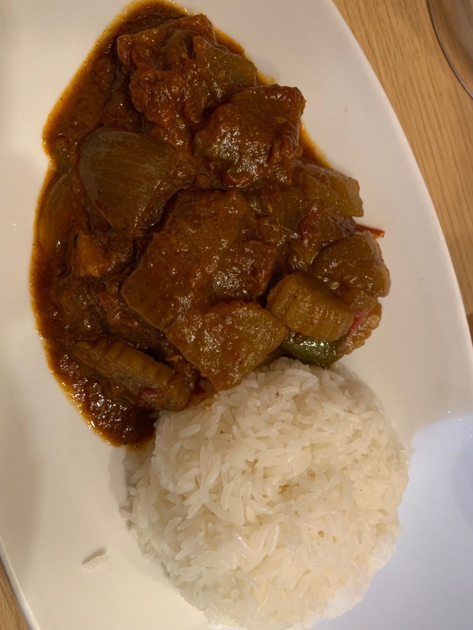 スパイスがザリザリ入ってます!塩味ではなくスパイスでパンチをつけている辺りがらさすが!!ここはタイ料理屋さんですが、どちらかと言うとインドカレー寄りかも。