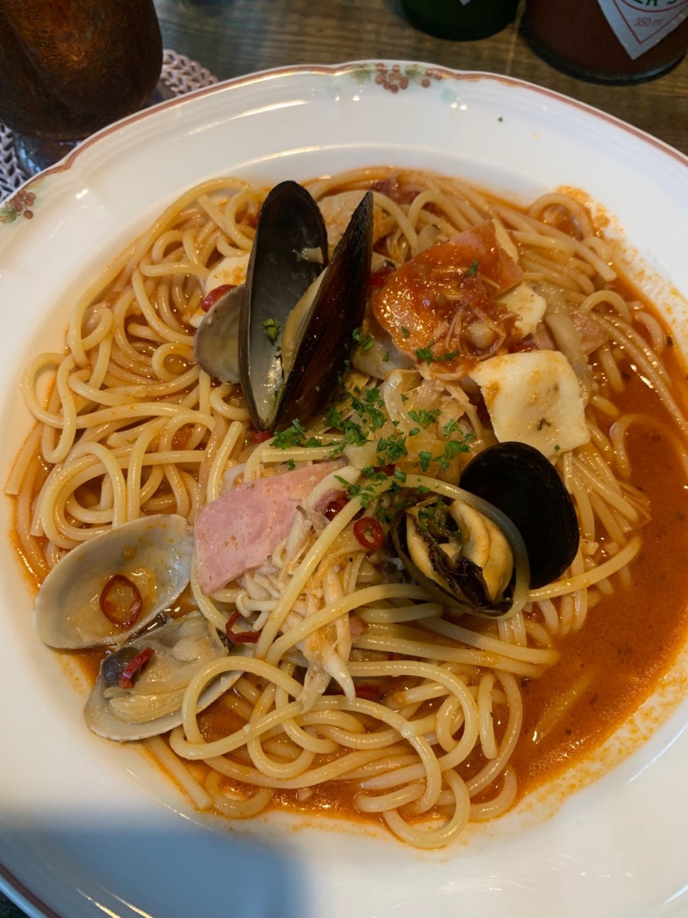 具は海鮮中心のアラビアータ!これが青山風らしいです。魚介の旨味がトマトソースに溶け出していて、旨くないはずがない!!!
