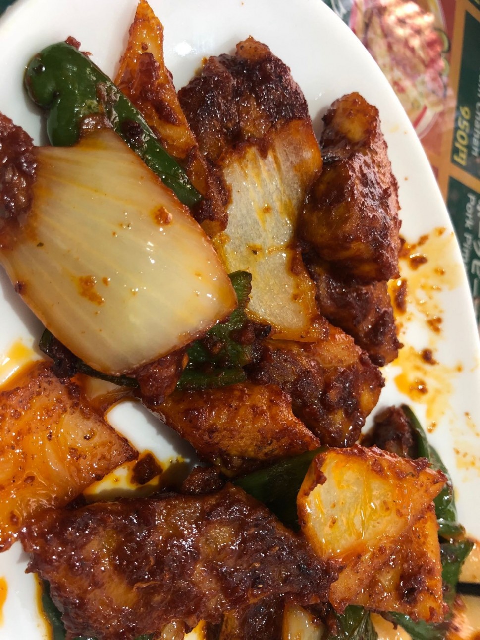 インド・アジアン料理でカレーメインのお店で頼んだ炒め物。激辛にしてもらいました。