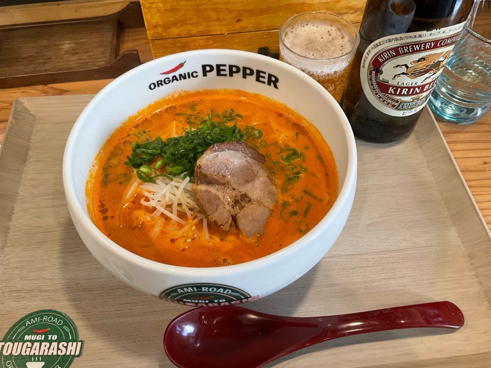 ラーメン界の杉咲花。別の人が青唐辛子のほうを食べていたので、自分は赤唐辛子にしてみました。青唐2点台だったので期待しすぎて、ちょっと拍子抜けしました。。たぶん青唐も1点台なのでは。。