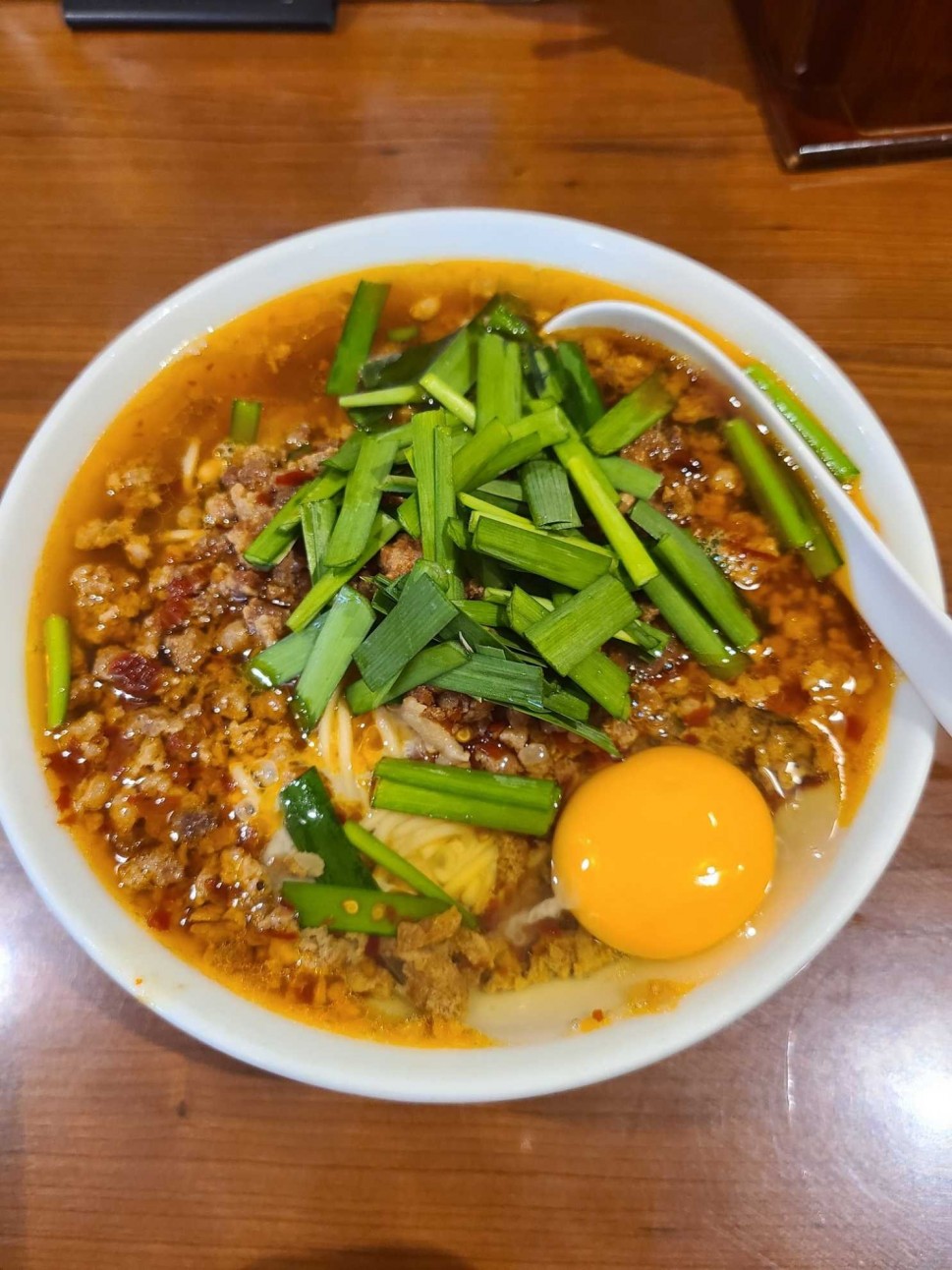 台湾ラーメンといえば味仙!今回は5辛(アフリカン)で。スープは辛いけど旨みのあるスープで美味。生卵は合うけど、辛さはマイルドになっちゃうので悩みどころ。