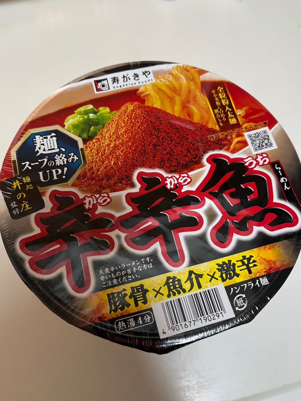 これ最高に楽しかったです!魚粉がカツオみたいな味で出汁効いてました!辛さはちょうど良くて普通に辛いし鼻水出るけど美味しさの方が感じられます😆ノンフライ麺です!麺にこし?があって噛み切れなくて辛い辛いってなりました笑蒙古タンメン超えたかもって思うくらい美味しかったです😋