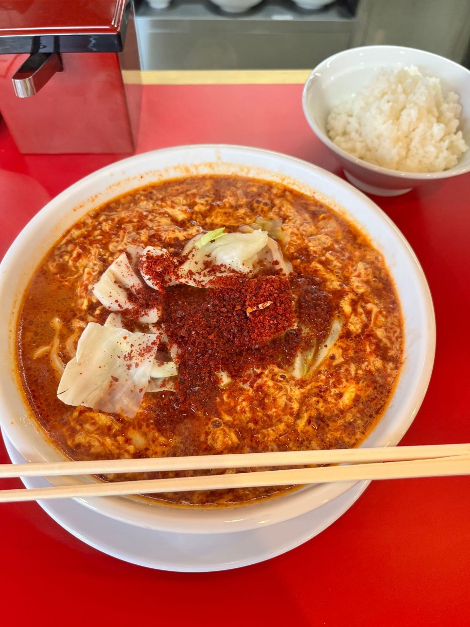 麺を食べ終わったあとの卵と唐辛子をライスの上にかけて食べると少し満足できます!もちろんニンニク追加で!🧄