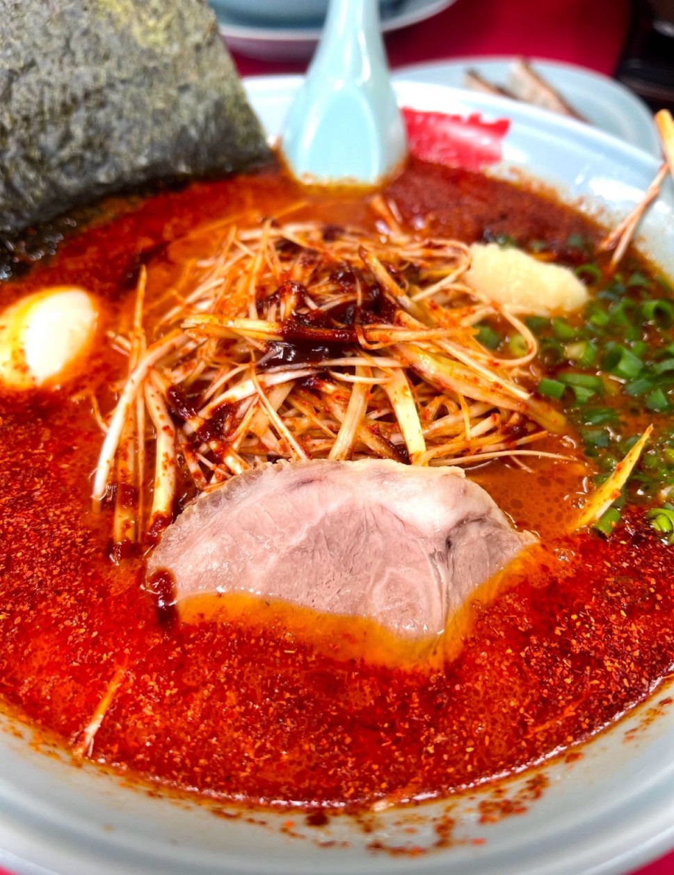 名前負けなあまり辛くないラーメン。ただ普通の一味多いだけ。山岡家と言うことでラーメン自体は美味しいけど、選択を間違えると塩辛くなるかも?