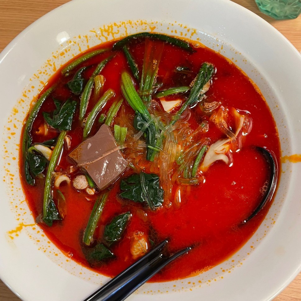 具の旨味がスープに合わさっており、ベースの味はちゃんと美味しいです。辛さの中でも具材の滋味をしっかり味わうことができます。