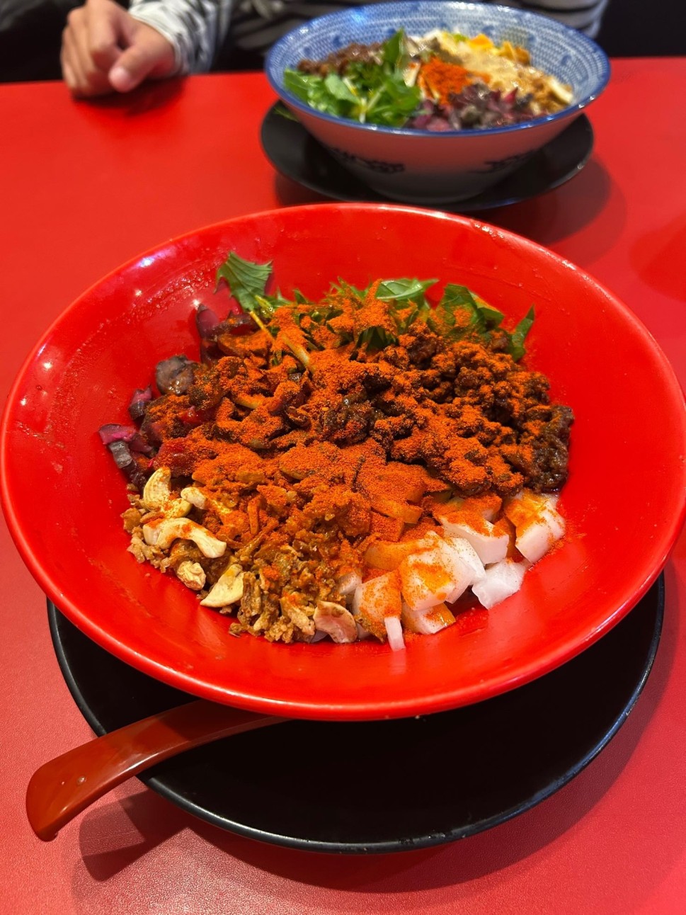 味変の酢が3種類あり、飽きずに色んな味を楽しめました。辛さは徐々に痺れてくる感じで最後まで美味しかったです。