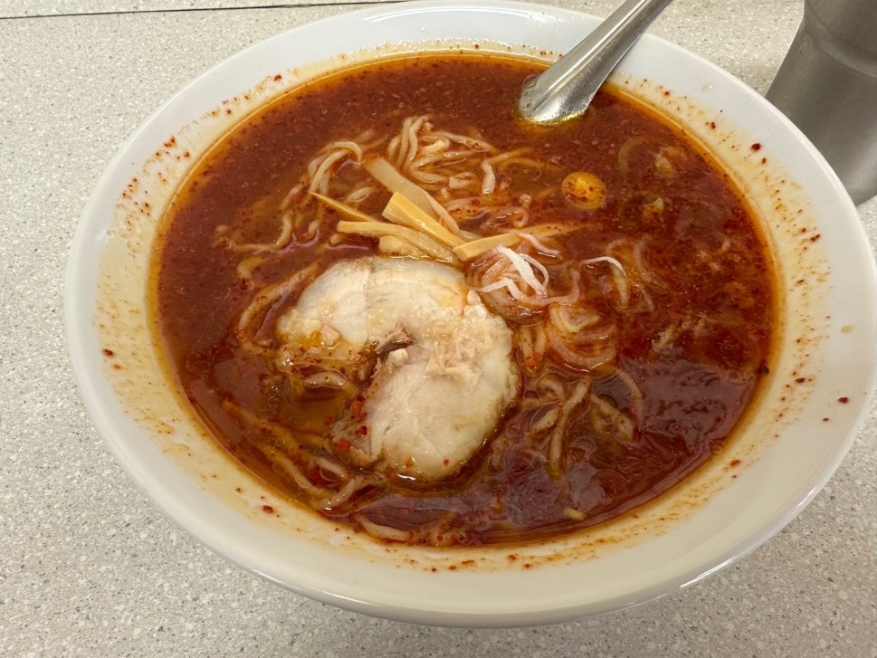 過去の写真を見てみるとトッピング等変更がある様ですね。全く塩ラーメンには見えないです。最初は味醂由来な甘味がありピリ辛でしたが、底から混ぜると凄い量の唐辛子。麺にからみまくりますがそれ程辛い品種ではない様です。