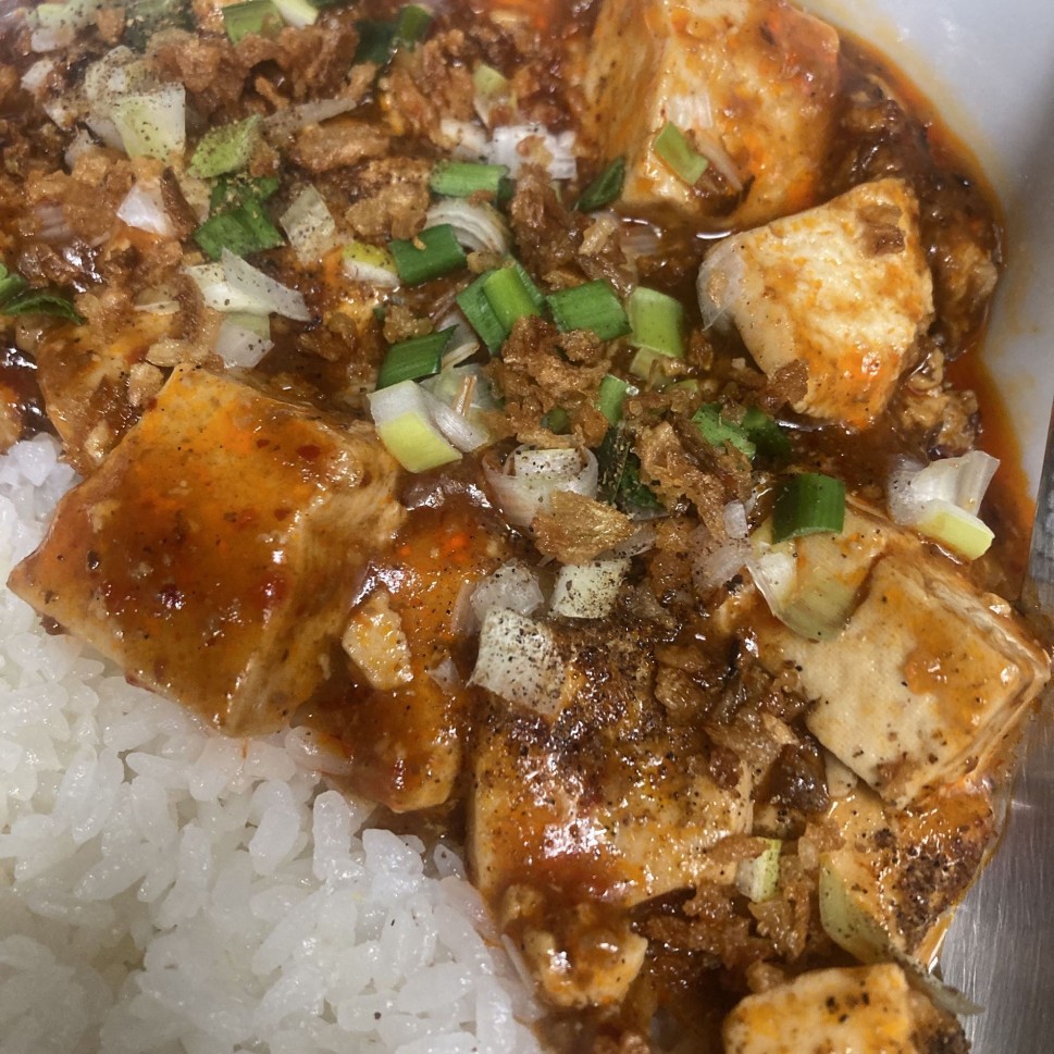 本日は陳麻飯1辛、ほど良いピリ辛具合です。卓上のフライドオニオンをかけて、ザクザク食感を楽しみます♪