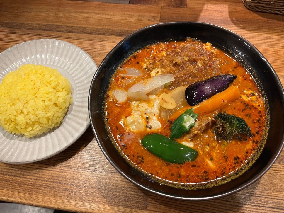 色味だけで言うと唐辛子の存在感が目立つが、揚げた野菜ひとつひとつの味を感じられ、味わい深いスープカレー。