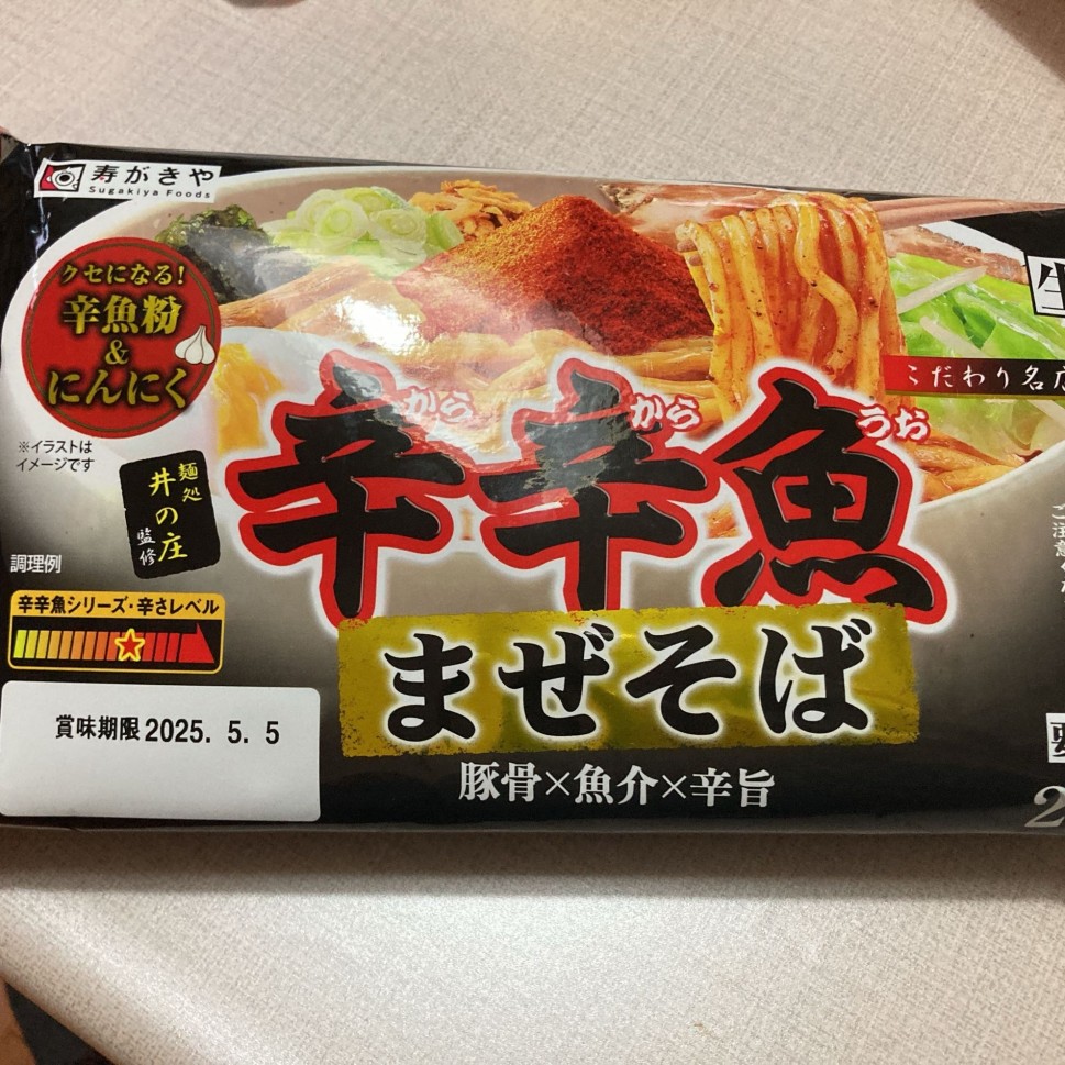辛辛魚のチルドまぜそば。麺もスープも美味しい!後入れの粉末スープ1袋全部入れて食べました。私的にはもっと辛くても嬉しいけど、商品としてはちょうどいい気がします。辛辛魚のチルド系どれも美味しい!