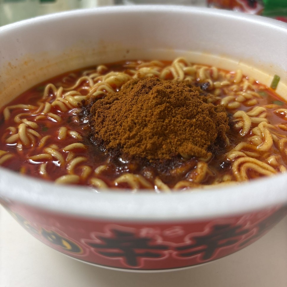 麺単体で食べると辛さが蓄積して休みながらでないと完食は難しく感じました🥵