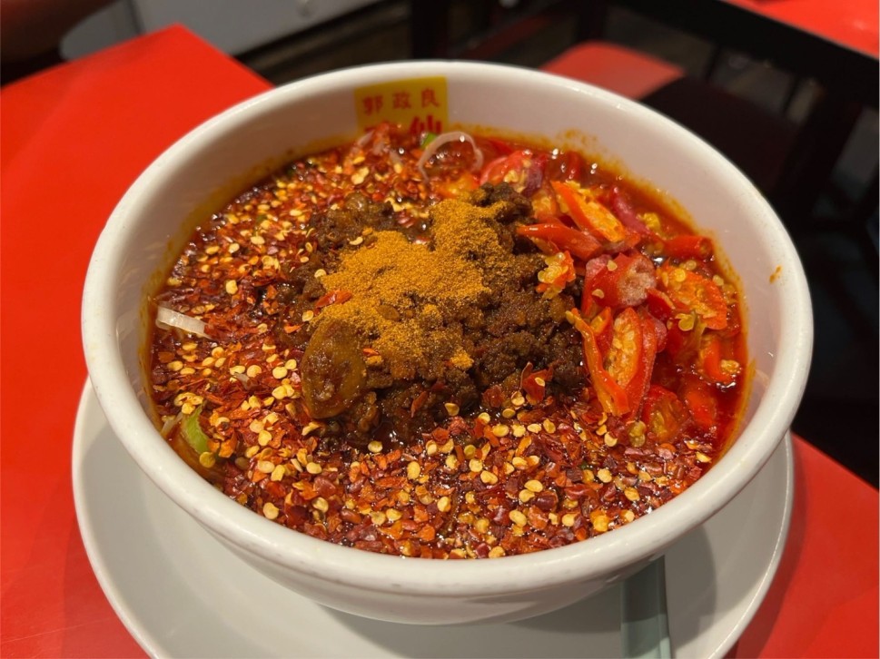 スープの旨みが先走り、唐辛子の旨みが広がった後に辛さがグッと口内を支配する。