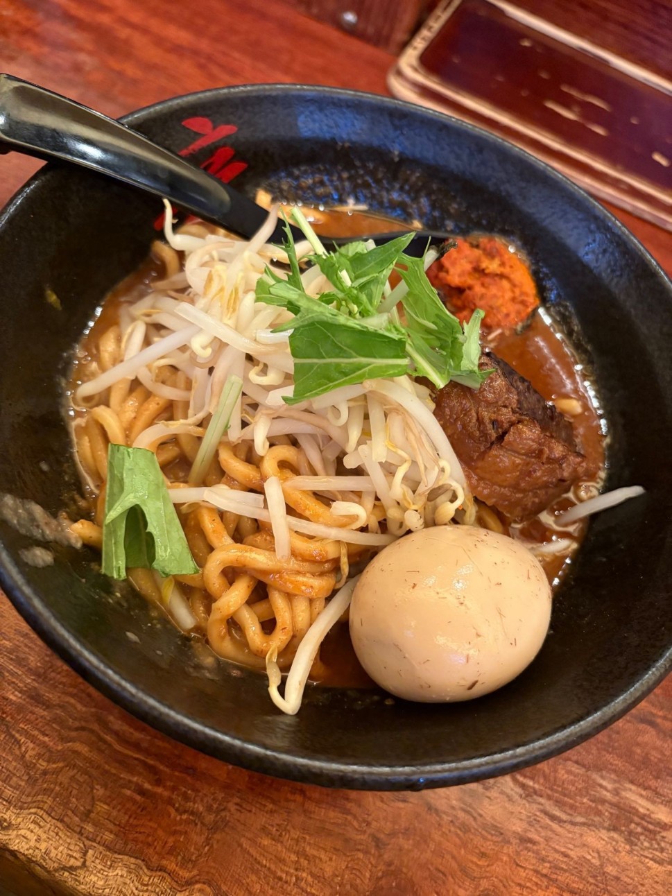 口がヒリヒリするけど、辛さインパクトはそんなにないかも。ドロドロx太麺なのですぐにお腹いっぱいになります。