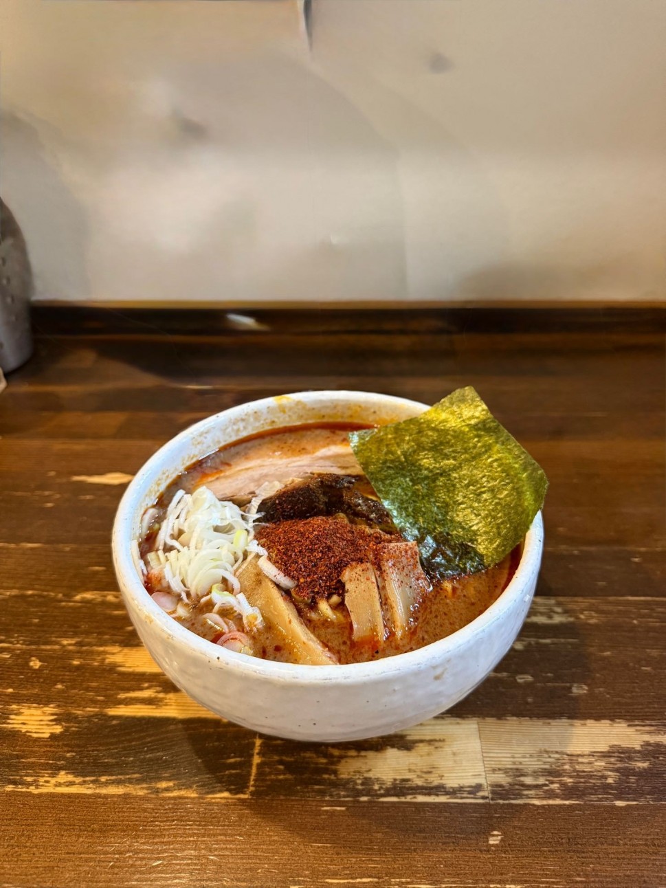 辛さは思ったより控えめで、卓上にある唐辛子をかけましたが、刺激だけが強くなってしまって…
