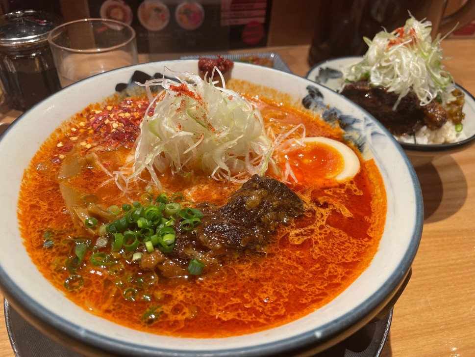 投票の為に再度訪問!今回も追い柚子をして、7丁目。調子良かったので8丁目にすれば良かったかな?と思いつつ、卓上調味料で辛さや酸味を追加。AFURI辛紅はトッピングも卓上調味料も豊富なので好みの味にできるのが本当にありがたいです✨酸っぱいのが好きな方、追い柚子+卓上のりんご酢を入れて食べてみてください!暑い日でも爽やかに食べられます🌶