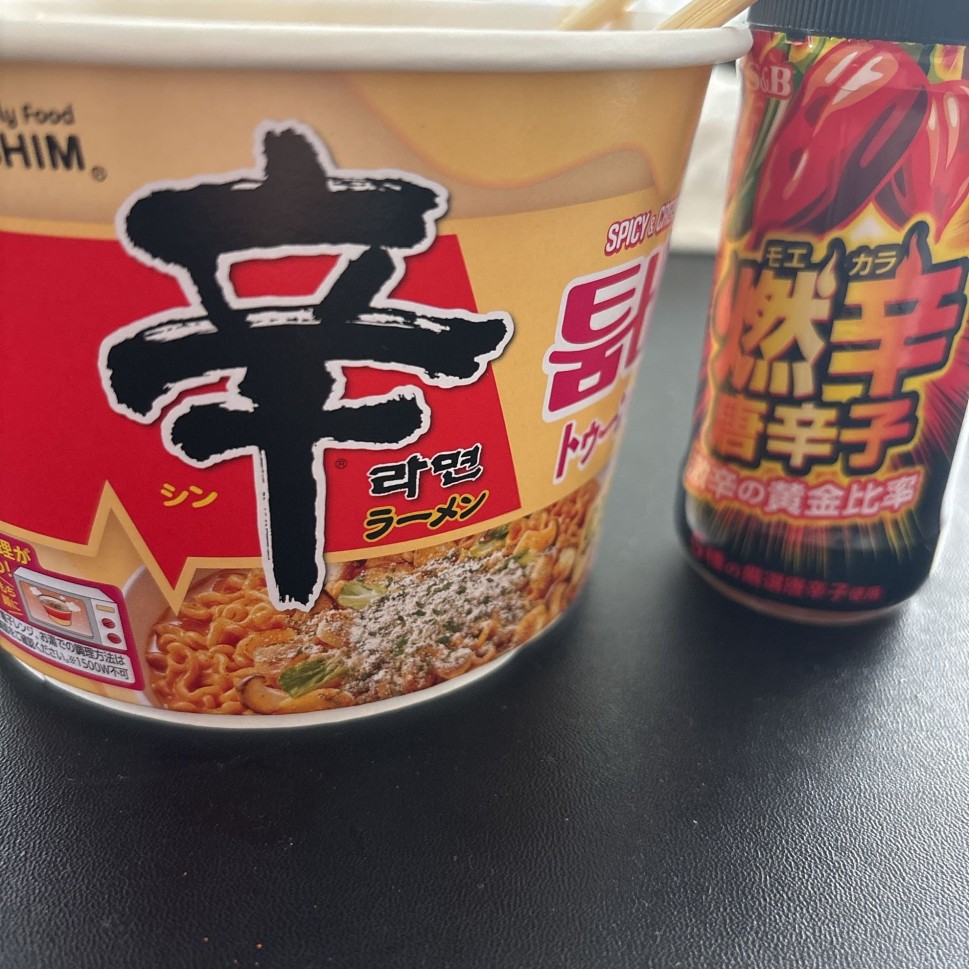 辛くないプルダック!生の鷹の爪2本と燃辛を追加して食べました!美味しかったです!