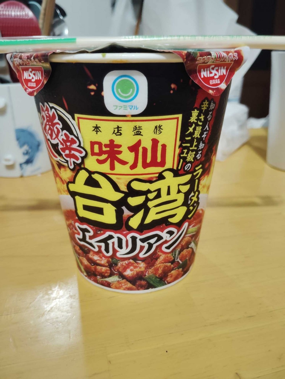 店舗の通常の台湾ラーメンと同じくらいの辛さです。カップ麺の大辛でも十分辛いですが、もう少し辛くてもいいかなという印象だったので、ありがたい。エイリアンは期間限定ですが、常設してほしい