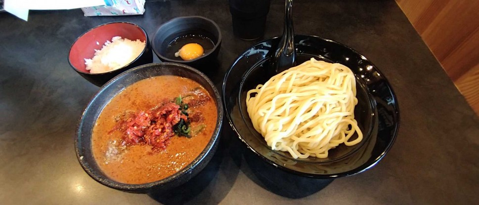 つけ麺で麺の量は特大、雑炊セットを付けて食べた。