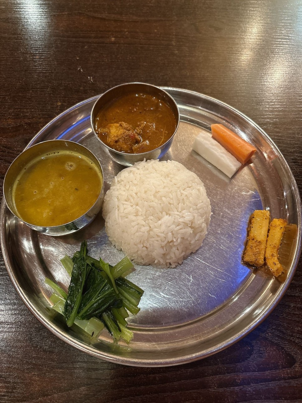 ガチネパのお店ということで興味があり、ダルバート注文したんですが、お漬物の種類とかが少なかったのでもう少し色々ついてるタカリセットにすればよかったなぁと後悔。塩味、辛味ともに控えめですが本場感があって楽しかったです!🇳🇵