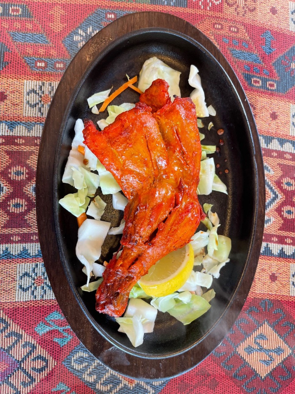 タンドリーチキンと下に敷かれている野菜を一緒に食べるととても美味しいです。
