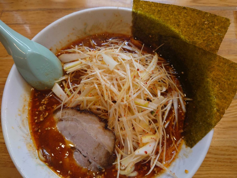 いつもは醤油ラーメンとか食べてたから、何気に初めて激辛ピリ辛ネギを注文。辛さは5辛まで選択可能。