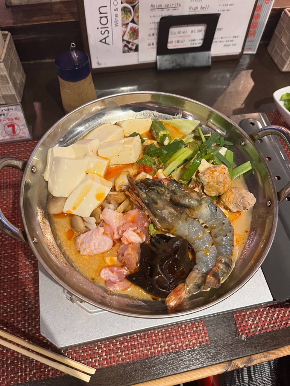 パクチーをお好みで載せることができて、エビも入っていて、とっても美味しいお鍋でした。辛さはほぼなく、辛さ増しのオプションもなさそうだったので、刺激を求める人には向かないです。