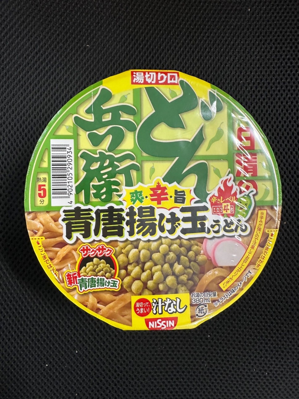 どん兵衛のスープ出汁に辛味が合う。美味しくいただきました。
