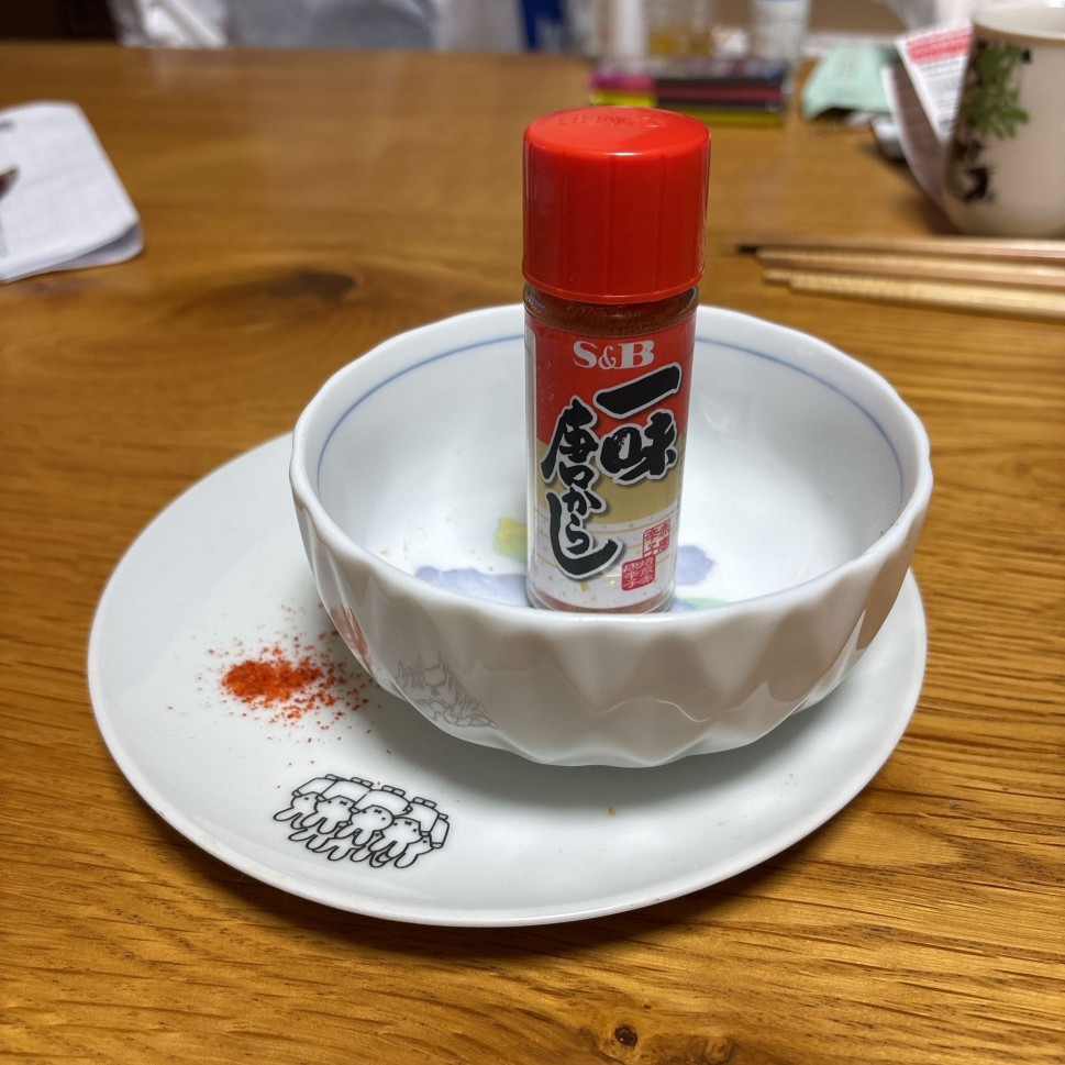 定番の一味唐からし。うどんに一般的な量(3〜5回)かけた場合は0.90KMくらいです。本当は0.50KMくらいにしようかと思ったのですが、個人的にカラムーチョ(0.71KM)よりは辛かったのでこの辛ジャッジになりました!