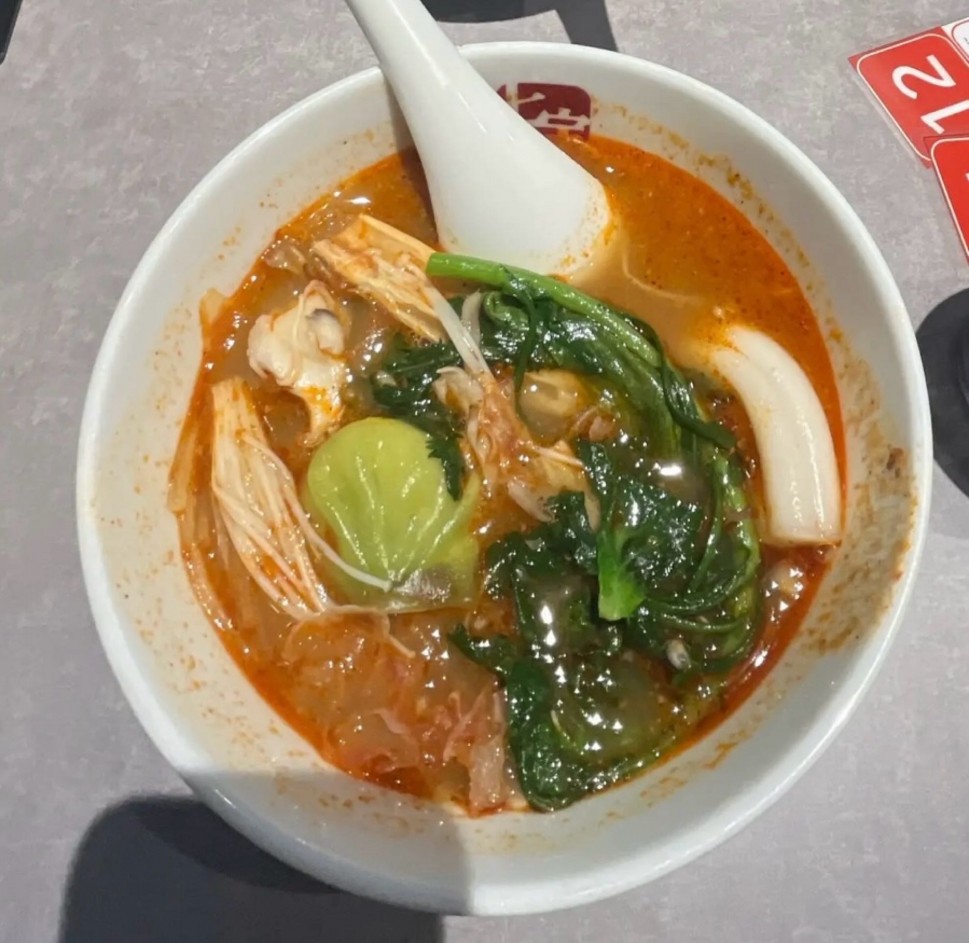 結構辛い!けどめちゃくちゃ美味しくて通るたびに食べたくて仕方なくなるトムヤムクンスープにするのにハマってるけどデフォのスープも美味しいなぜか板春雨にすると辛さが増したように感じた