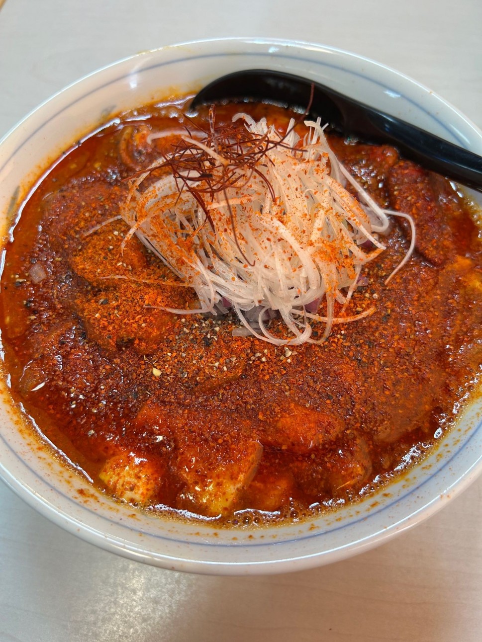 2回目食べて来ました!ちょうど美味しく食べられる辛さスープがスープではなくてほぼ麻婆豆腐の餡ですドロっと系が好きな方にはおすすめです♡食べてる時は全然平気だけど、数時間に胃が痛むのは気のせいかな笑