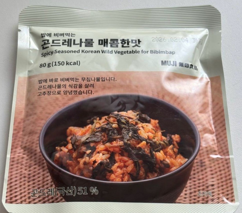 韓国の山菜「高麗アザミ」を使ったナムル。「辛口」表記だったが、あれ?辛味はどこ…?すぐさま冷蔵庫から辛めのキムチを取り出し鬼のように乗せて原型崩壊。普通版の味の方がコンドゥレの味がしっかり分かって好きだった。辛くはないけど。