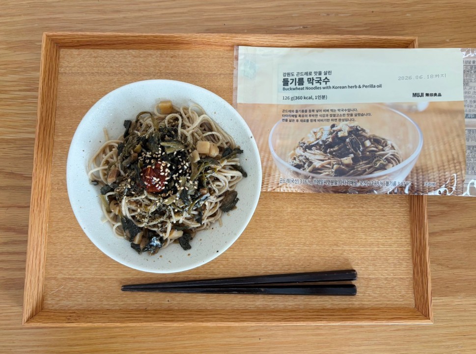 韓国限定品。麺の茹で時間は7-8分の表記だったが3分でも柔らかめ、味も良し。とにかくコンドゥレが味わい深い。ただ全く辛くはなかったので、結局チューブの豆板醤を回しかける事態に陥った。