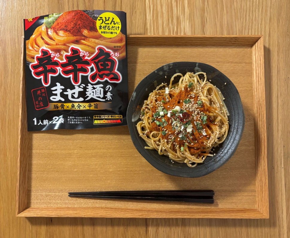大好きなまぜ麺の素。これだけだと辛味が足りないので、いつも刻み唐辛子と豆板醤をトッピング。辛辛魚への冒涜だと言わるかもしれないが、欲には抗えない。ビールも止まらない。